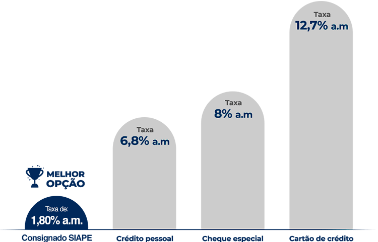 O consignado SIAPE possui taxa de juros mais baixas do que outras modalidades de crédito porque desconta diretamente no contracheque.
